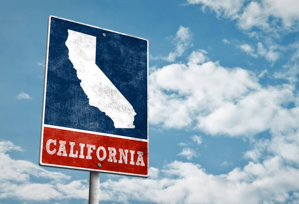 California state map on road sign